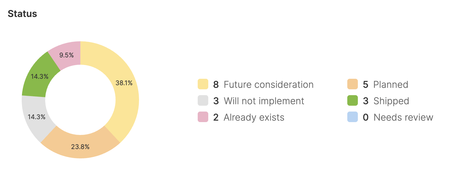• Status: Track stages (New, Planned, Shipped)