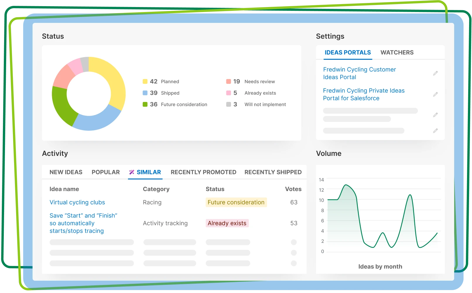 - Customers submit ideas via branded portal