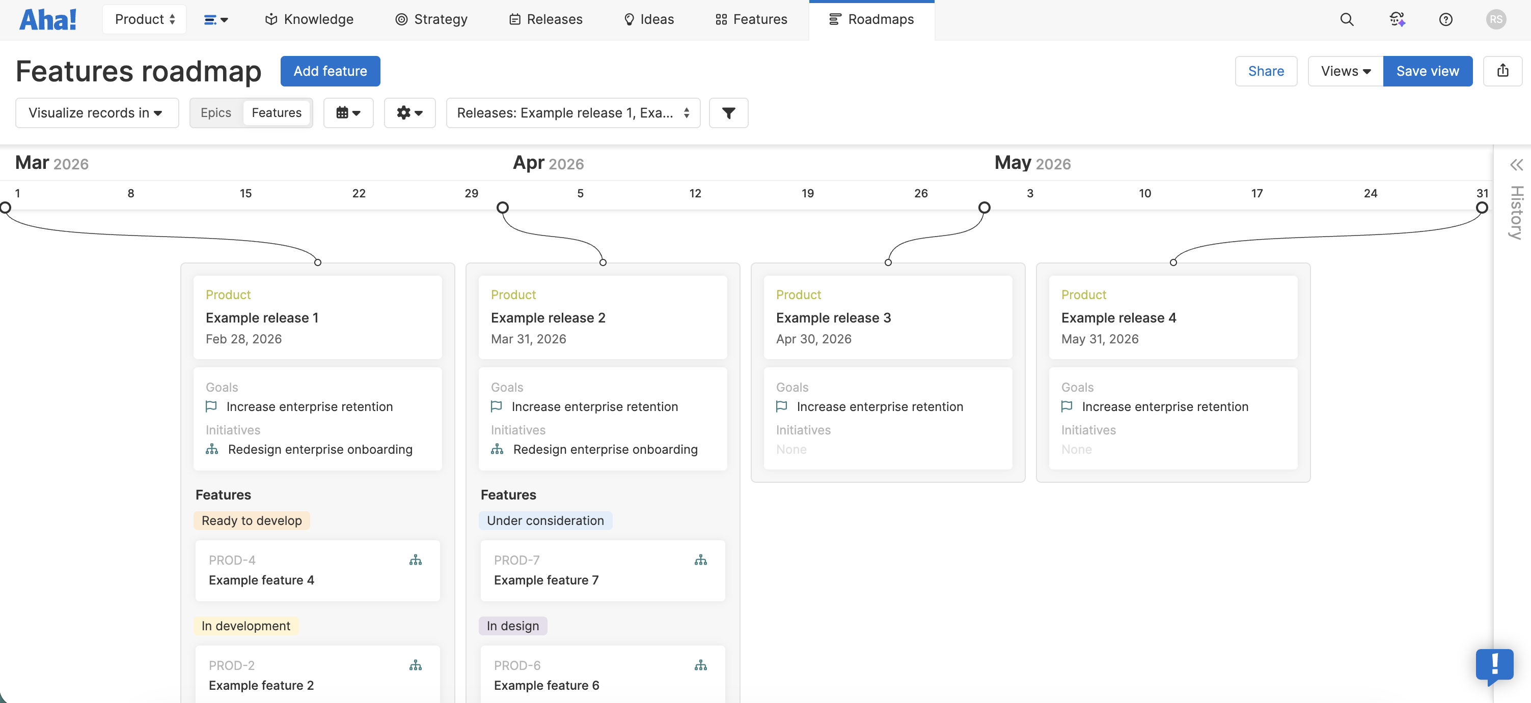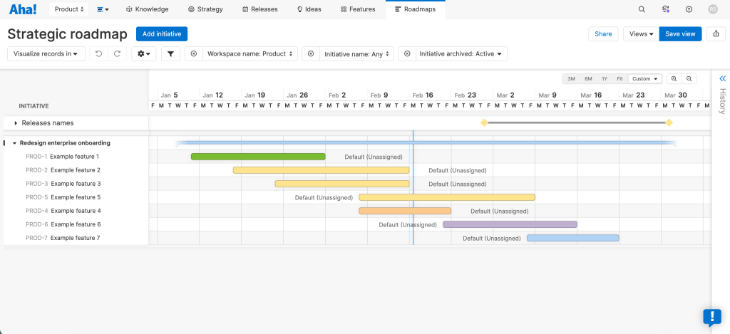 Strategy roadmaps in Aha show initiatives across: